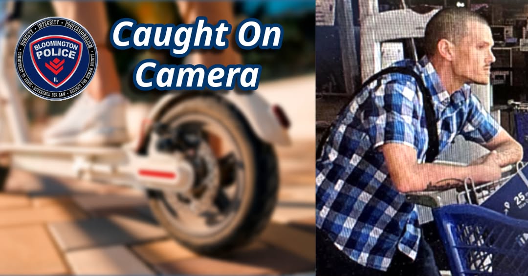 BLOOMINGTON, Ill. (WMBD) — The Bloomington Police Department is asking for help locating a man who hopped on an electric scooter and drove it out of a local retail store.