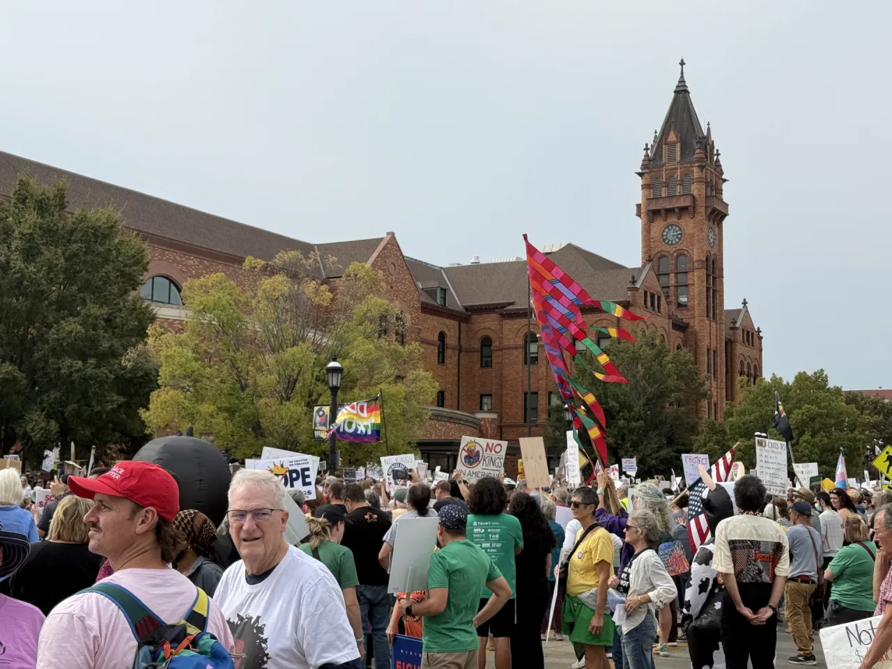URBANA, Ill. — On Saturday, the Champaign County Courthouse became the backdrop for a protest against President Donald Trump’s administration. This local gathering was part of the nationwide “No Kings Day of Action.”