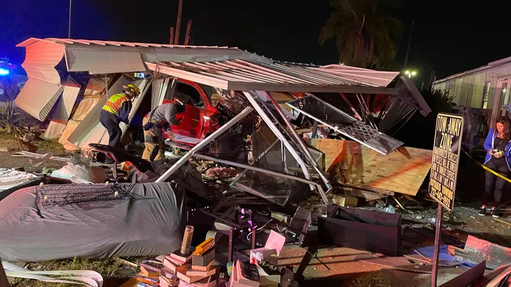 A resident of Pinellas Park, Florida, is expressing her gratitude for being unharmed after a harrowing incident where a truck plowed into her home on U.S. 19. The collision threw both her and her boyfriend across the room, after which the driver fled the scene.
