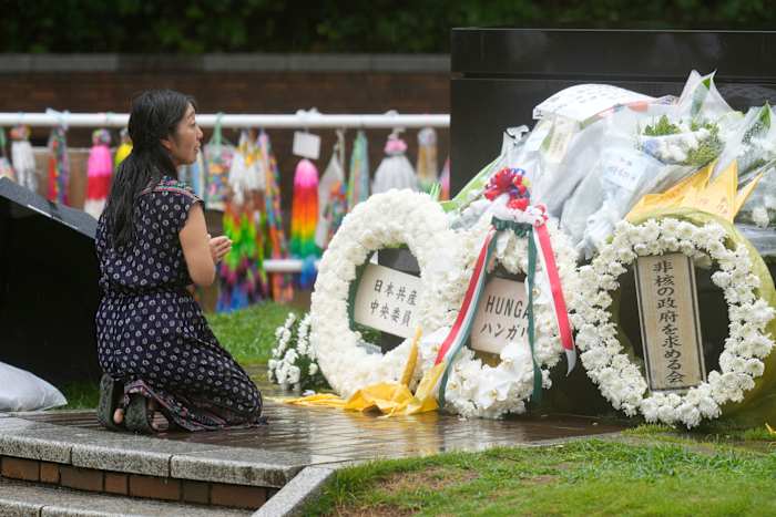 Survivors and their families started paying tribute at the park, as well as at the nearby hypocenter park, hours before the official ceremony.