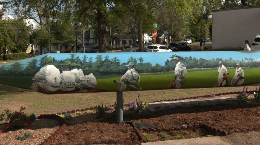 The artist of the monument, Baruti Tucker, says it took him two months to complete the painting, working on it for six hours a day.