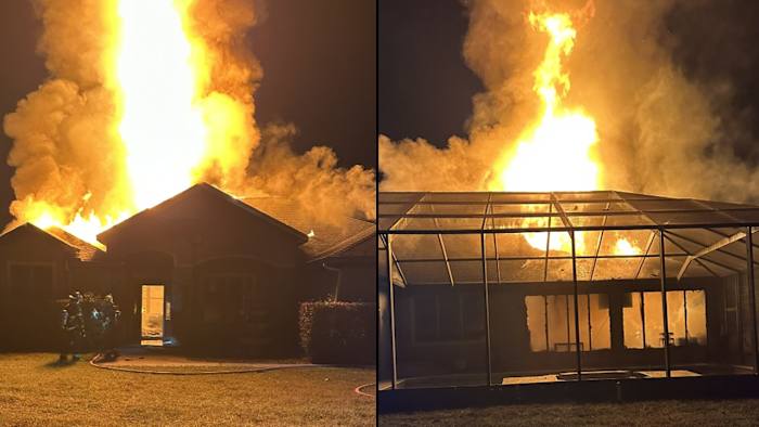 The first firefighters to arrive — from MCFR Lynne Station #4, getting to the scene before 1:30 a.m. — reported the home was approximately 60% involved, with flames venting the roof. Battalion Chief #2 assumed command and directed incoming units from South Marion Station #6, Weirsdale Station #27 and Volunteer Station #26, the post states.