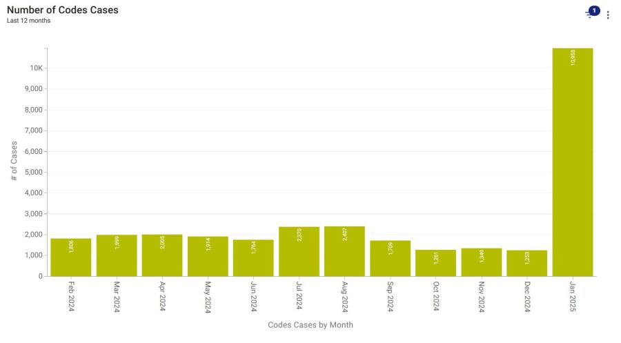 Here is a look at the number of open code cases in St. Petersburg broken down per month: