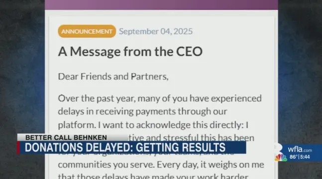 TAMPA, Fla. (WFLA) – A nonprofit in Pinellas County that assists seniors with housing and meal programs finally received its donation funds after enlisting the help of Better Call Behnken to resolve issues with a fundraising platform.