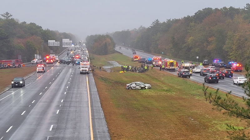 The Massachusetts Department of Transportation said both sides of the highway were closed at Exit 22.