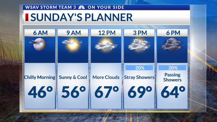 SAVANNAH, Ga. — Prepare for another brisk night ahead, with the prospect of a chilly Sunday morning and minimal rain expected as the weekend draws to a close.