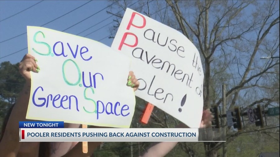 Protestors gathered outside the Pooler City Council meeting Thursday, voicing their concerns over development in their communities.
