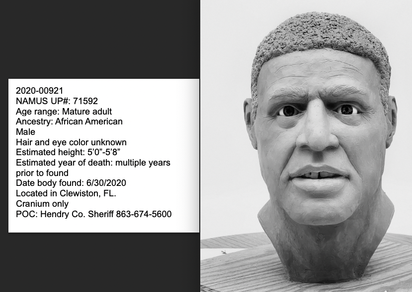 The 3D-printed skull Shadowens worked on this year was an active case out of southwest Florida. This victim’s description was limited.