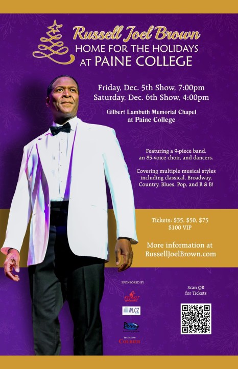 “Russell Joel Brown, Home for the Holidays at Paine College,” is happening on Friday, December 5th, and Saturday December 6th, tickets are on sale now.