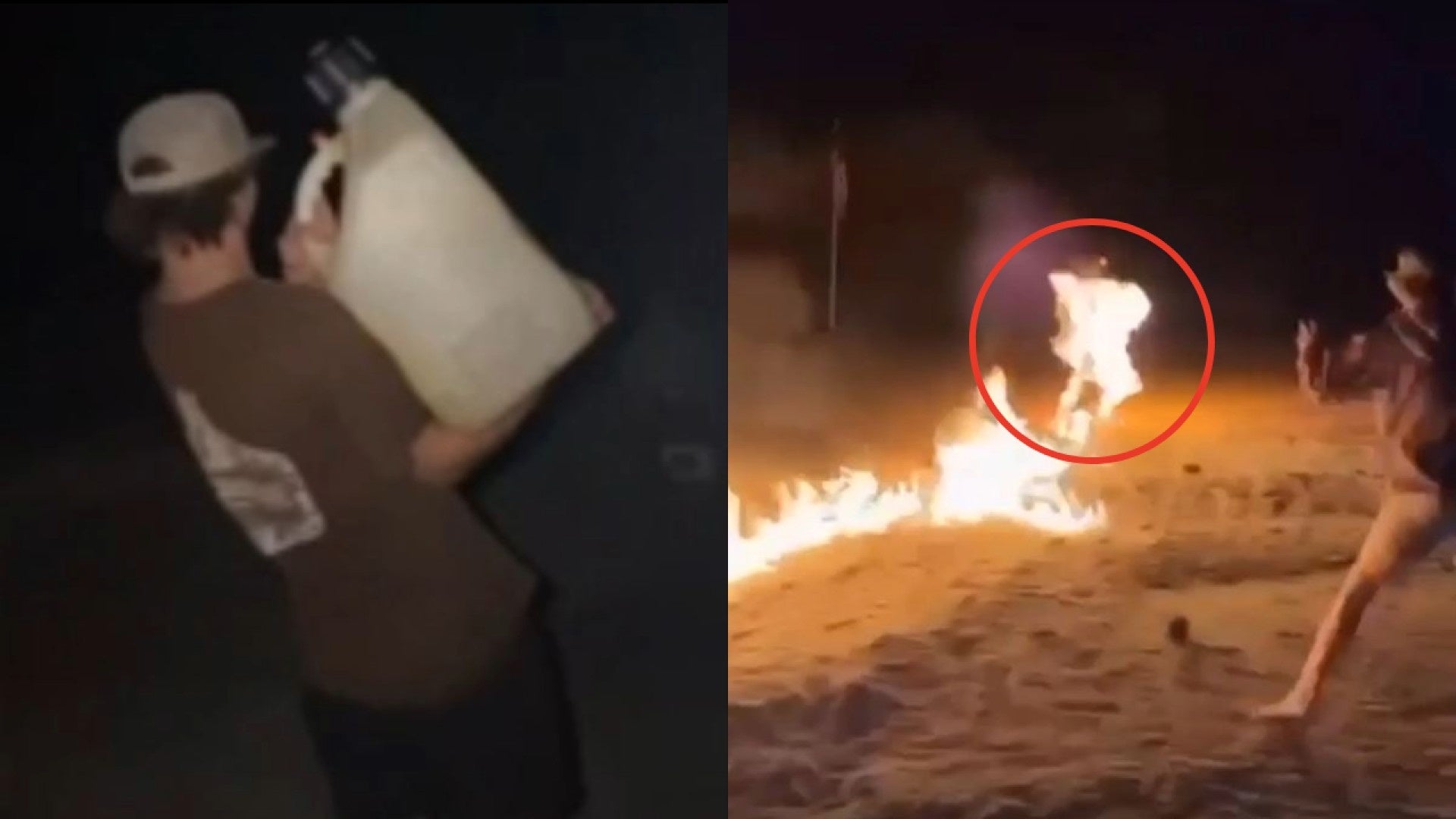 The addition of gasoline caused the bonfire to flare up dramatically. Ming was then seen creating a trail with the fuel, which ultimately led the flames to reach another boy nearby on the beach.