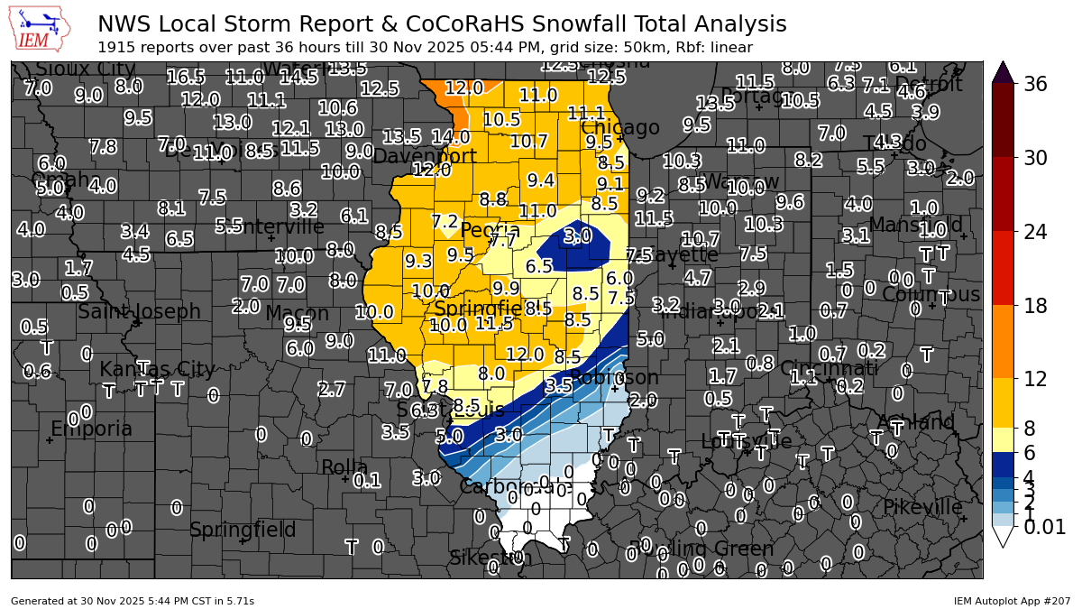 A robust winter storm swept across Central Illinois early Saturday morning, marking the first significant snowfall of the 2025-2026 season. The storm persisted throughout the day and into the evening, creating a dramatic backdrop for the Fighting Illini Football season’s final game. Despite being the inaugural storm of the season, the snowfall totals recorded could potentially rank this system among the most significant by the season’s end.