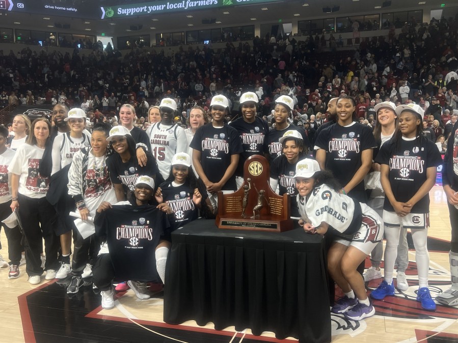 South Carolina finishes the SEC regular season at 15-1. They are tied with Texas for the top spot. The teams will share the SEC regular season championship. The top seed for the conference tournament next week will be decided by a coin flip during halftime of the women’s Ole Miss-LSU game, which begins at 4 p.m.