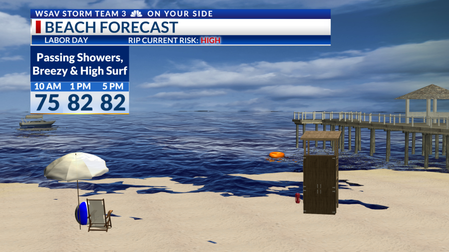 At the beaches, there will be a high risk of rip currents due to the strong winds offshore. Surf will be breaking at 3-4 feet. On our waters, Small Craft Advisory is in effect until Tuesday morning.