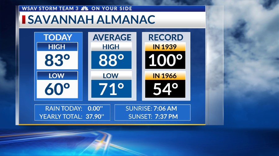 SAVANNAH, Ga. () — The streak of nice and comfortable weather continued for Wednesday. Afternoon highs reached the lower to middle 80s.