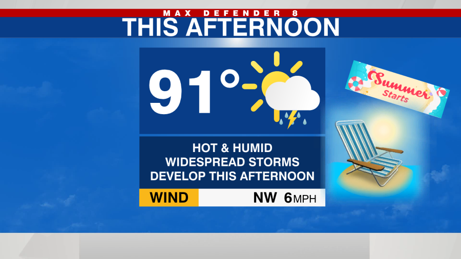 TAMPA, Fla. (WFLA) — The first day of summer will look and feel like it, as it has for the past month or so. Temperatures warm into the low to mid-90s with elevated rain chances.