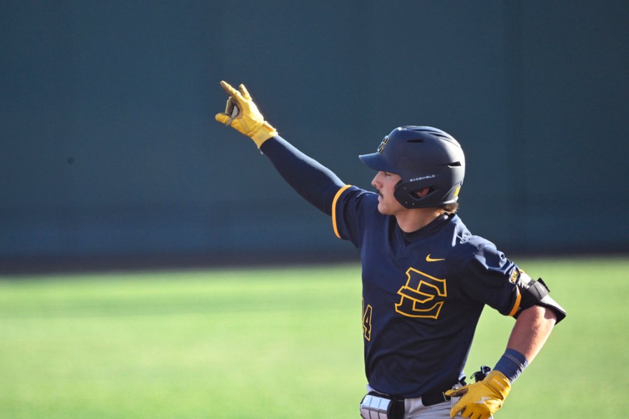 ETSU centerfielder Jamie Palmese’s two-run home run in the top of the ninth inning knotted the score at six apiece. Andrew Cotten took the mound for the Bucs and was able to stifle Tennessee’s red-hot offense and take the game into the 10th inning.