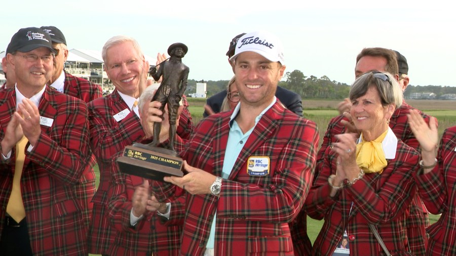 Thomas dons plaid jacket after RBC Heritage victory in playoff