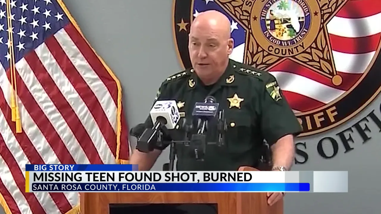 Watch the video above: Missing teenager discovered shot and burned in Santa Rosa County, Florida.
