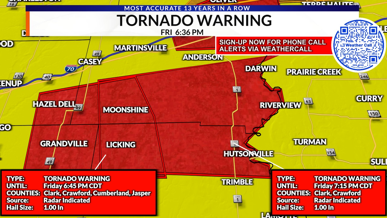 A tornado warning has been issued for part of the following counties: Effingham, Cumberland, Shelby, Jasper until 6:30 p.m.
