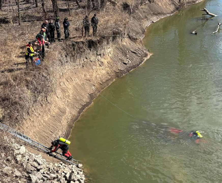 While En Route to the scene, the Springfield Illinois Fire Department dive team was requested to respond. Arriving units on scene then located a vehicle that was submerged under water in the river. Dive operations were set up, and divers from Springfield Fire “dove” the vehicle and were able to confirm it as unoccupied at the time.