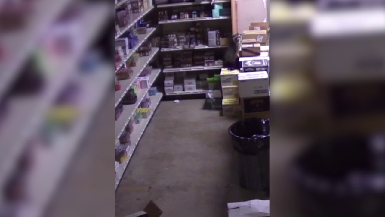 In the video, you can see the raccoon in one of the store’s aisles, drunkenly swaying as he steps through smashed bottles and puddles of alcohol.