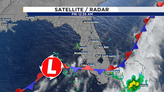 A lingering stationary front remains stretched across South Florida, with high pressure to its north. Onshore winds will push the sea breeze inland quickly on Friday, triggering scattered showers and a few isolated storms as early as late morning.