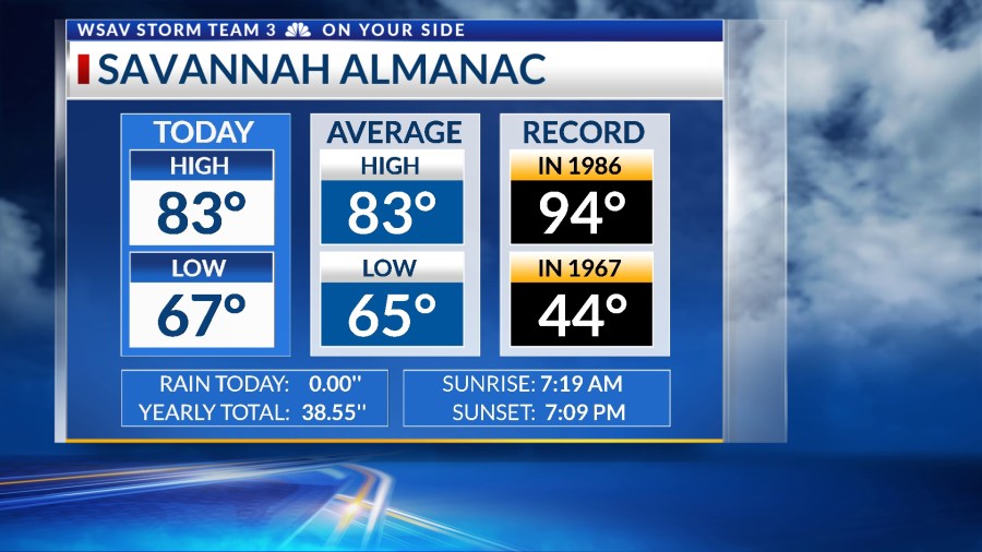 SAVANNAH, Ga. () — The new month started out with seasonably warm afternoon temperatures with highs in the lower to middle 80s.