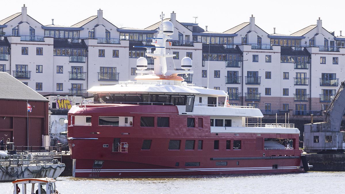 The bright red expedition superyacht named Akula after the Russian and Ukrainian word for shark sailed into Bristol on Tuesday morning