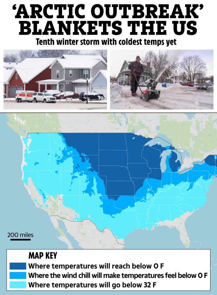 A week-long arctic outbreak is bringing the coldest weather this winter has seen from the North Pole up to multiple states across the country.
