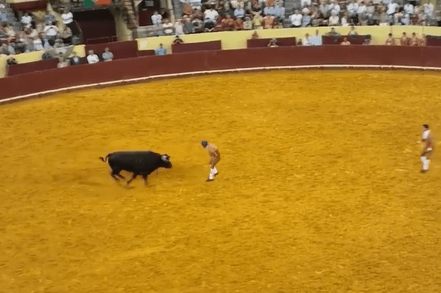 Footage shows him running towards the 700kg bull to try and provoke it into charging.