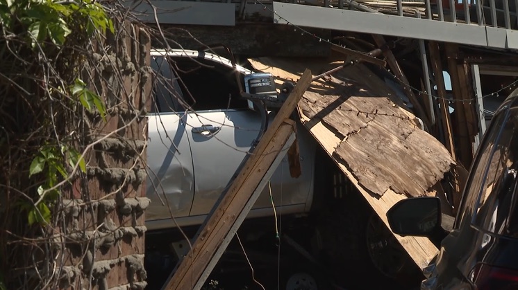 However, it appears the second-floor balcony is resting on top of the truck, which could delay its removal.
