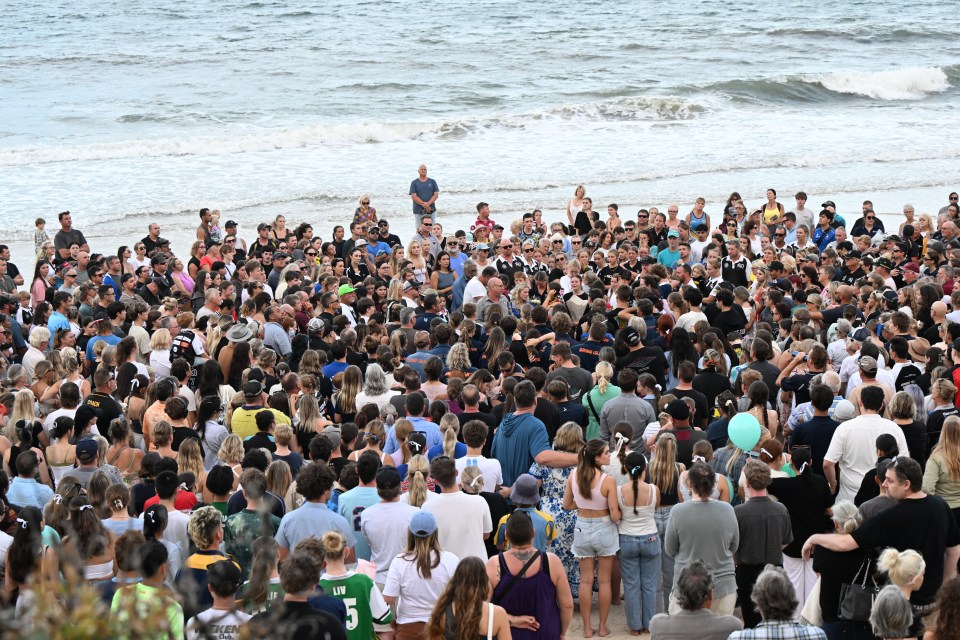 Hundreds gathered for a vigil for shark attack victim Charlize Zmuda at Woorim Beach on Bribie IslandCredit: EPA
