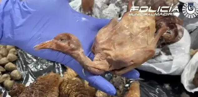 Vile footage shows bags filled with dead birds alongside bowls of plucked and what looks to be deep-fried pigeons – ready to be served to customers as roasted duck, The Spanish Eye reports.