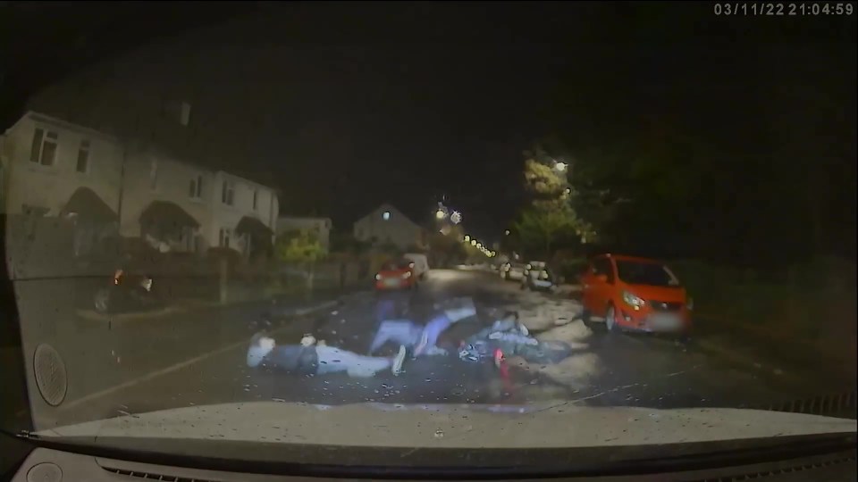 Mason McGarry and Dominic Mizzi were left sprawled on the road after being hit by a police carCredit: PA