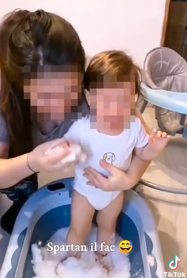 The TikToker mum, 33, is now facing a police probe for child abuse after the horrifying video was shared online last week from Bucharest, Romania.