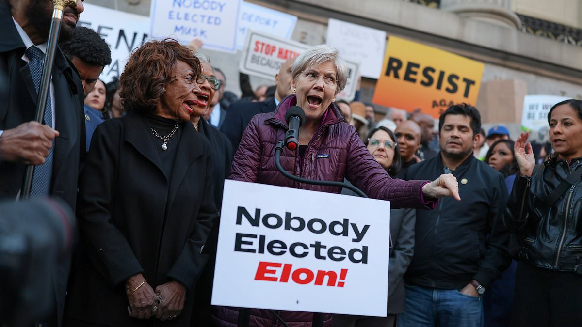 ‘No one elected Elon Musk to nothing,’ Warren cried at the rally. ‘That’s right. ‘Not one Democrat in America voted for Elon Musk. Not one Republican in America voted for Elon Musk. Not one Independent in America voted for Elon Musk.’