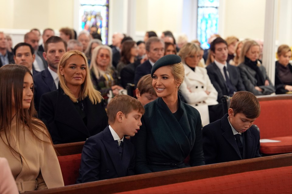 Ivanka Trump was pictured keeping a watchful eye over her kids as they dozed off during a church service at St. John’s Church in Washington DC before Trump’s swearing-in ceremony on Monday.