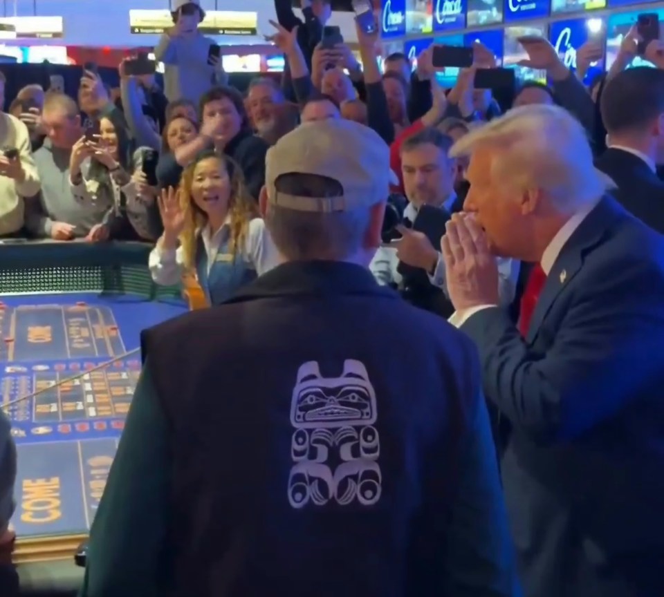 Trump then blew on a dice for good luck and playfully slapped one after a disappointing roll out at the Circa Casino in Nevada.