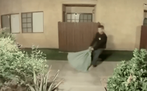 It was taken in the dead of night, and shows the man dragging a covered object along an empty street.