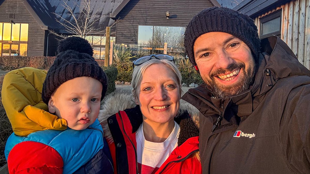Edward Bull, 44, (pictured with his wife and son) witnessed ‘the very sad’ death of the zebra at Colchester Zoo earlier this afternoon where the animal was brutally attacked by a rhno