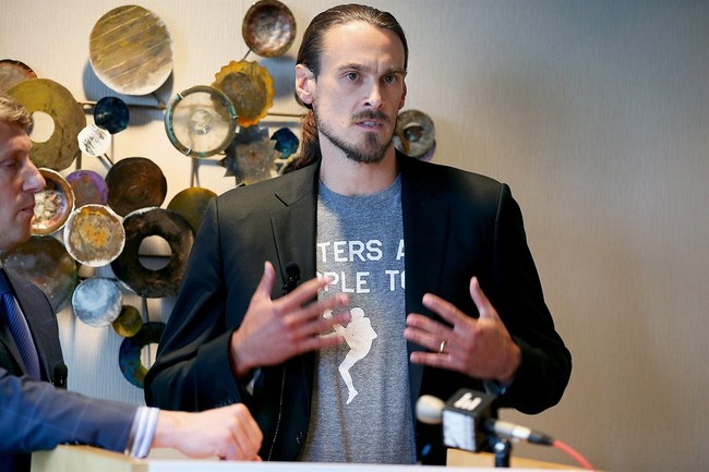 “I will now engage in the time-honored American tradition of peaceful civil disobedience,” Kluwe said at the end of his speech to the City Council before walking up to the front where the council members were sitting.