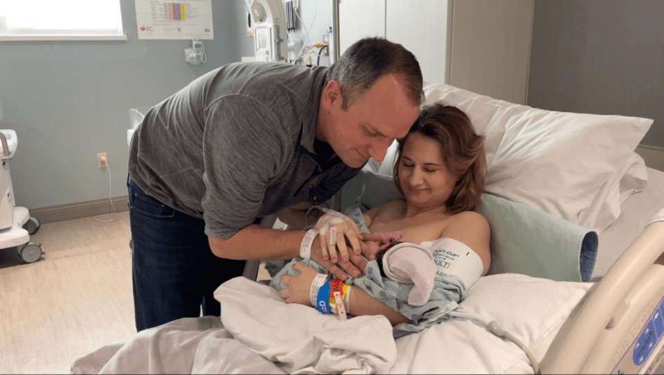 Gypsy could be seen lying in a hospital bed with baby Aurora in her arms as Ken leaned in to look at the newborn.
