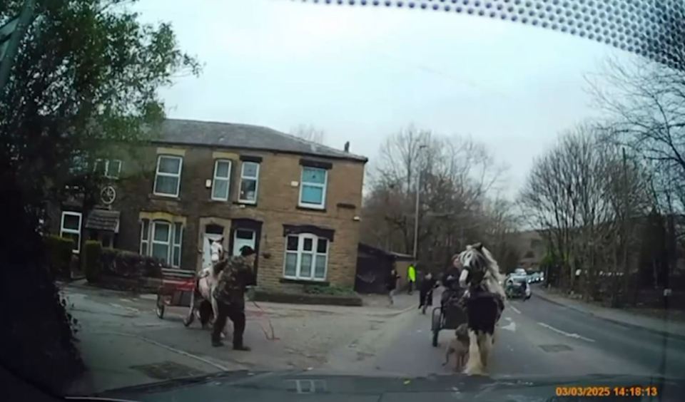 Shocked motorists watched on as the horses continued to rear up during the chaos.