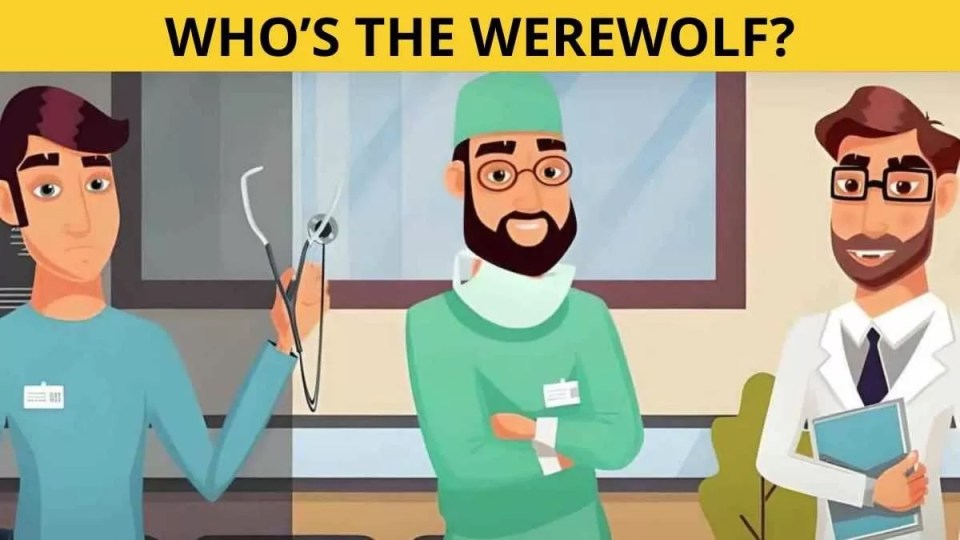 Everyone can see the three doctors hanging out in the hospital, but only those with 20/20 vision are able to spot the hidden werewolf within seven seconds.