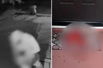 Chilling moment severed pig head dumped at family’s front door on Ring camera