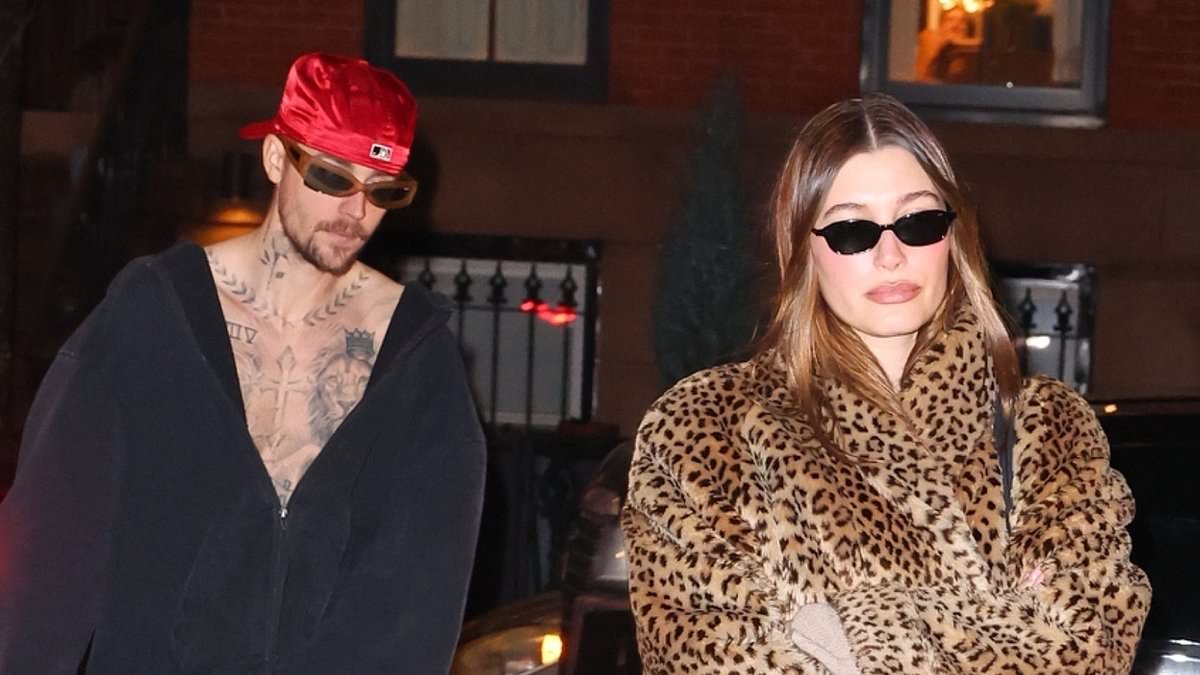 Hailey favored a more refined ensemble built around her cozy leopard-print coat, which reached down to her thighs
