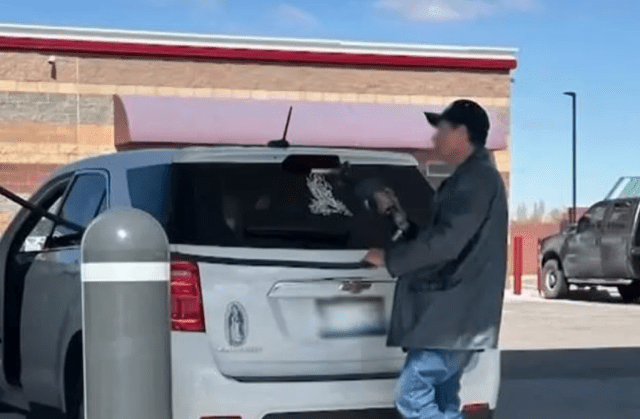 The innocent bystander told KSL-TV: “The lady just kind of flung the door open, she handed me the paper and said ‘please give this to police’.”