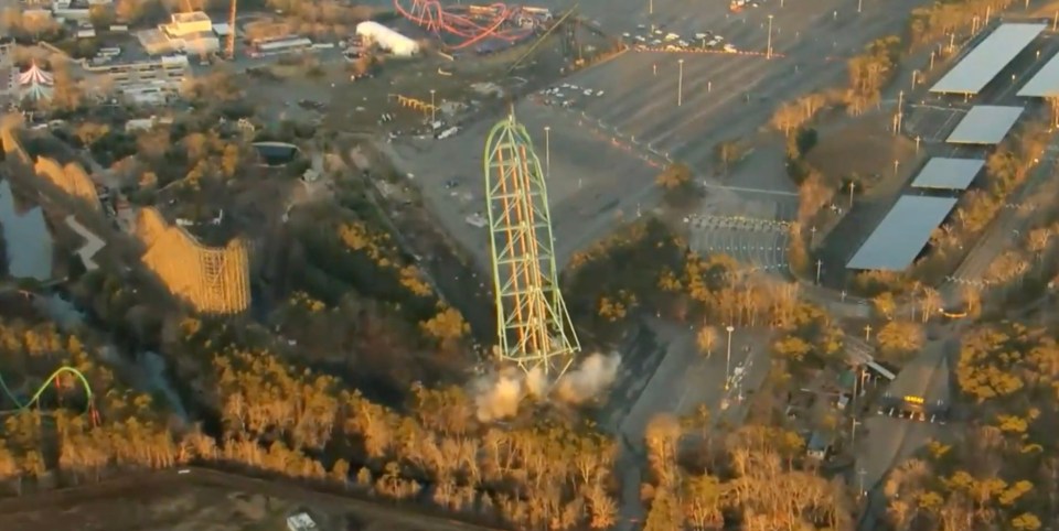 Video from above the explosion obtained by CBS News showed the roller coaster’s massive pieces laying in a pile of metal scraps.
