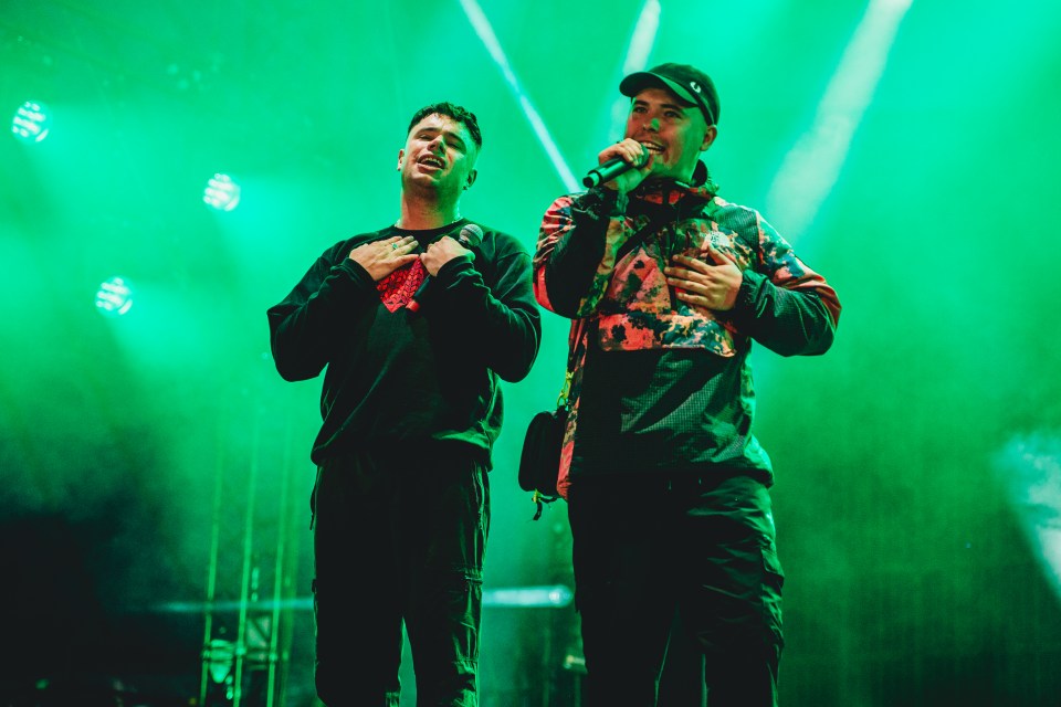 Kneecap rapper Liam O’Hanna, pictured right, has been charged with a terror offenceCredit: Getty