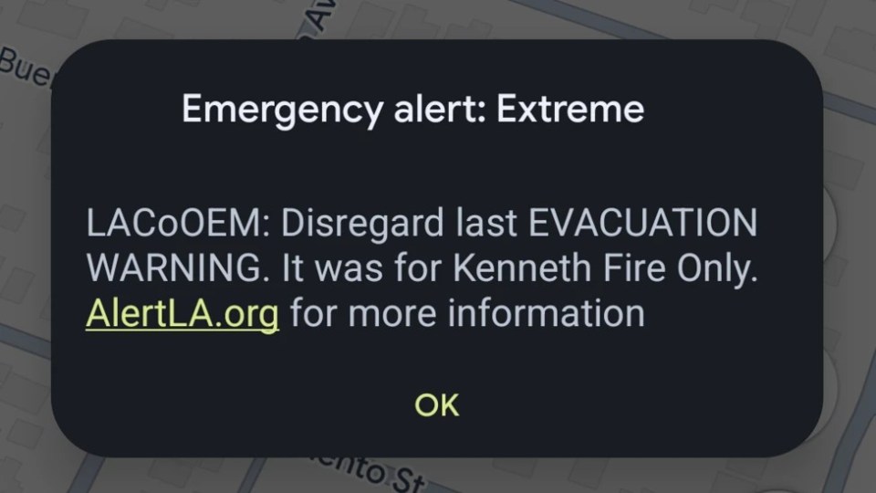 LOS ANGELES residents have been left furious after the whole 10 million population were sent an “extreme” fire evacuation emergency text.